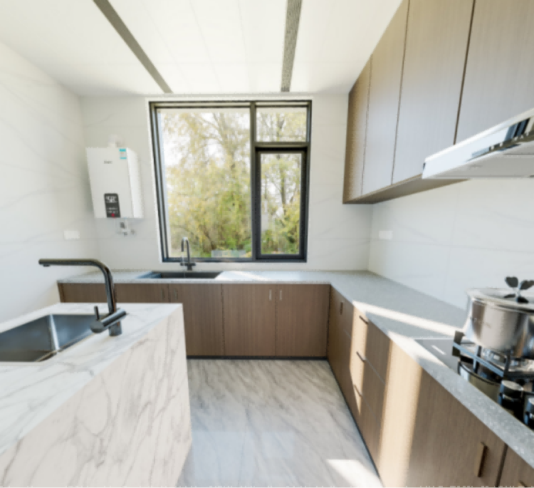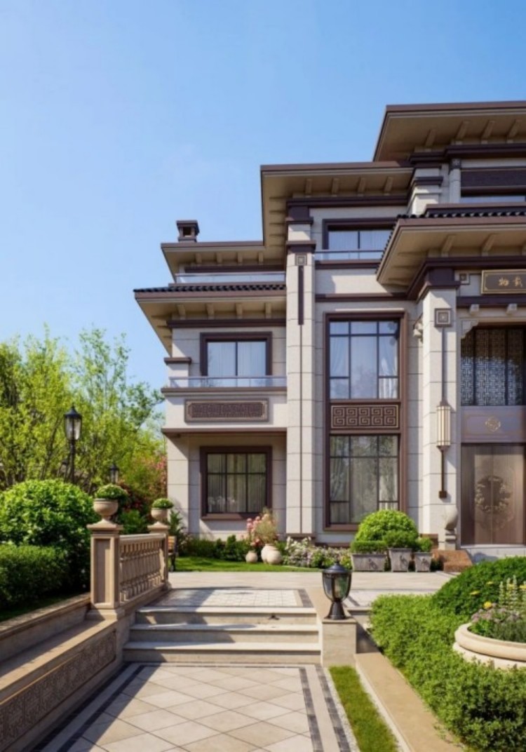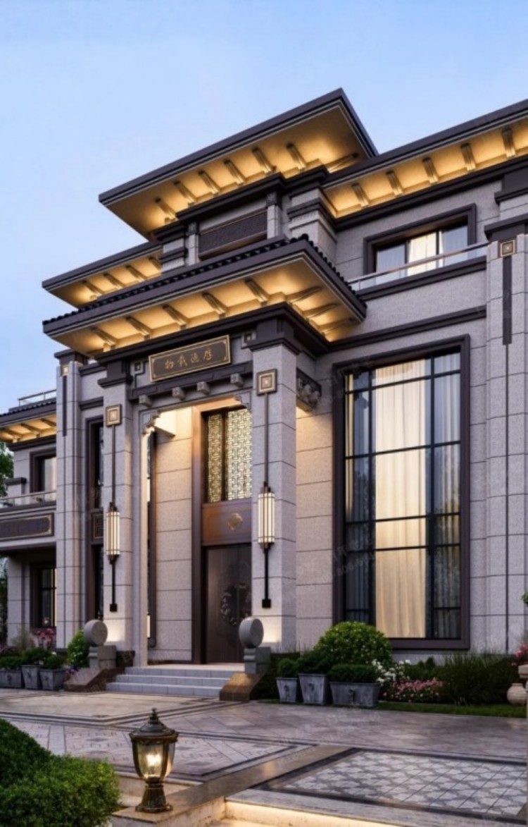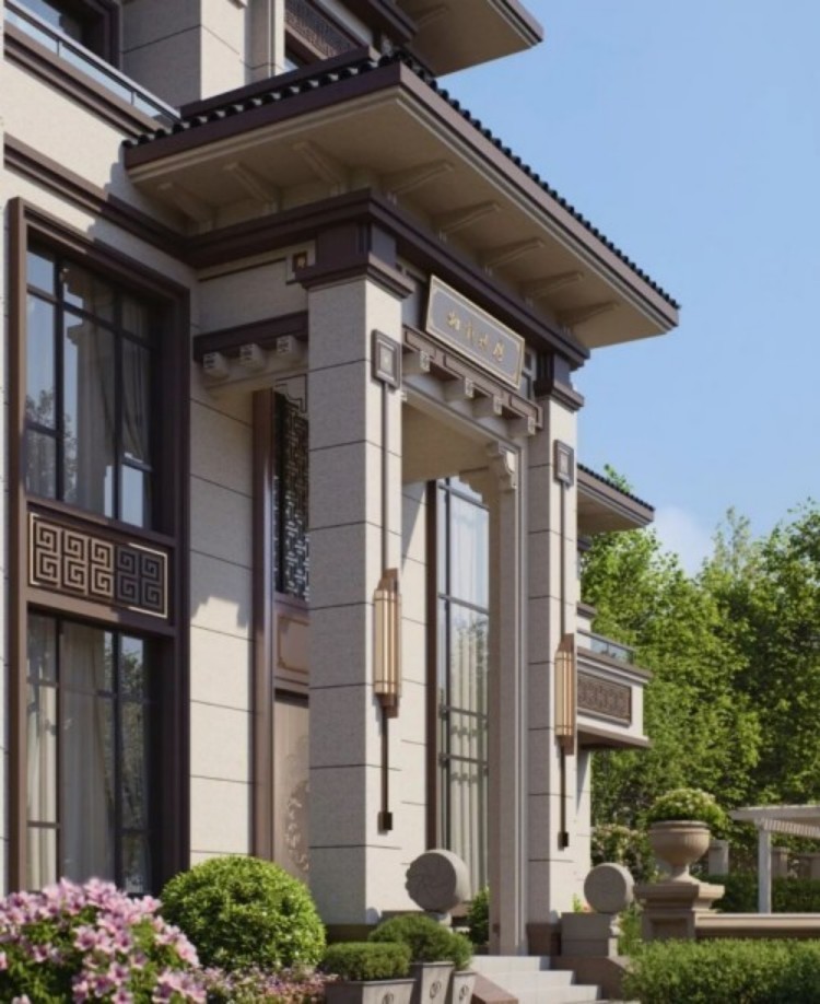 挑檐、门头与门窗比例均经细致推敲,摒弃繁复装饰,以简约几何线条传递中式韵味,契合现代审美。
