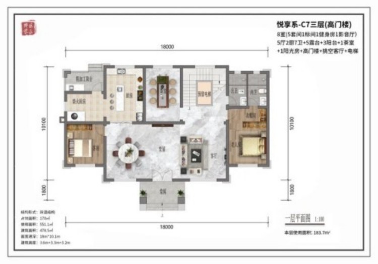悦享C7不仅是一栋建筑,更是对“归来”的深刻诠释。它一共三层,占地170㎡,使用面积达551.1㎡。