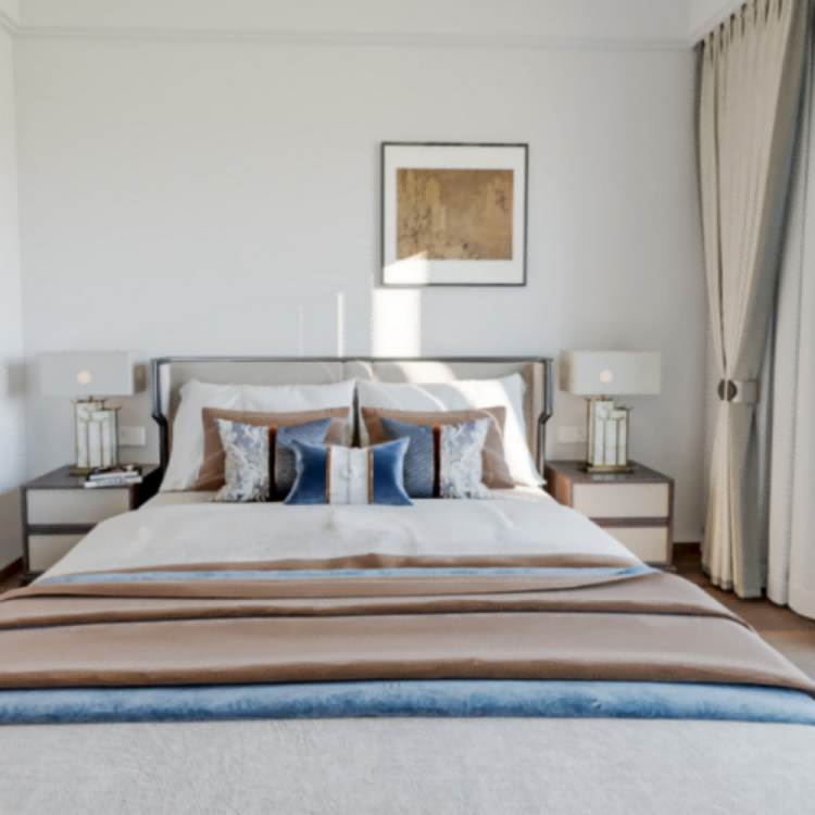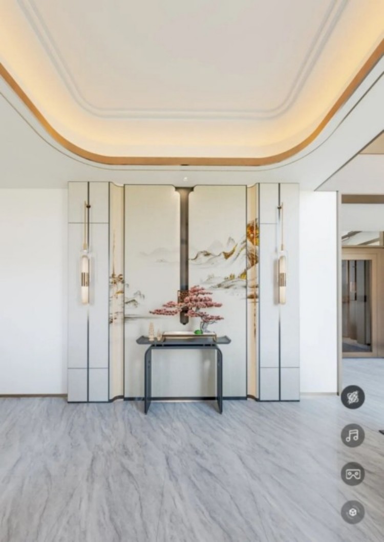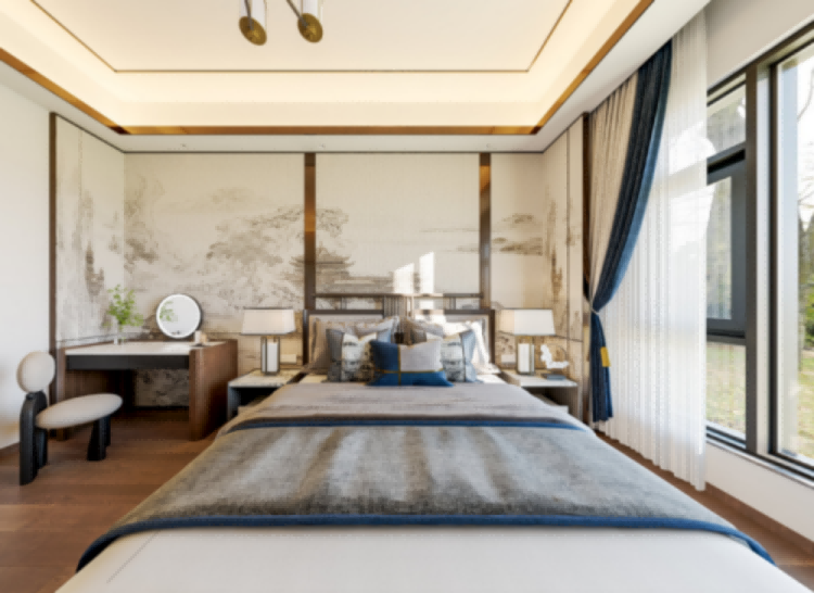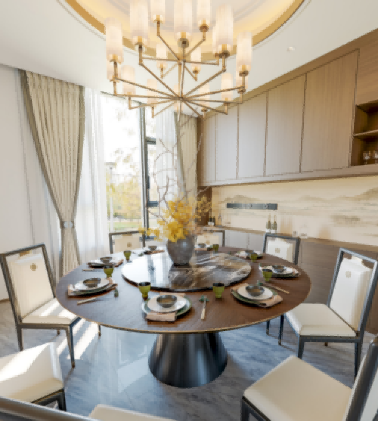 它采用严格的中轴对称布局,整体庄重典雅,静谧中透露出内敛的尊贵气质,归家的仪式感由此而生。