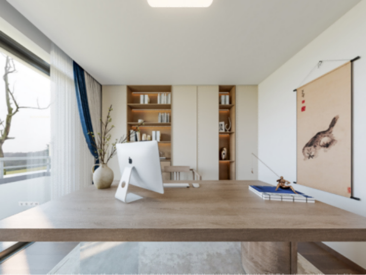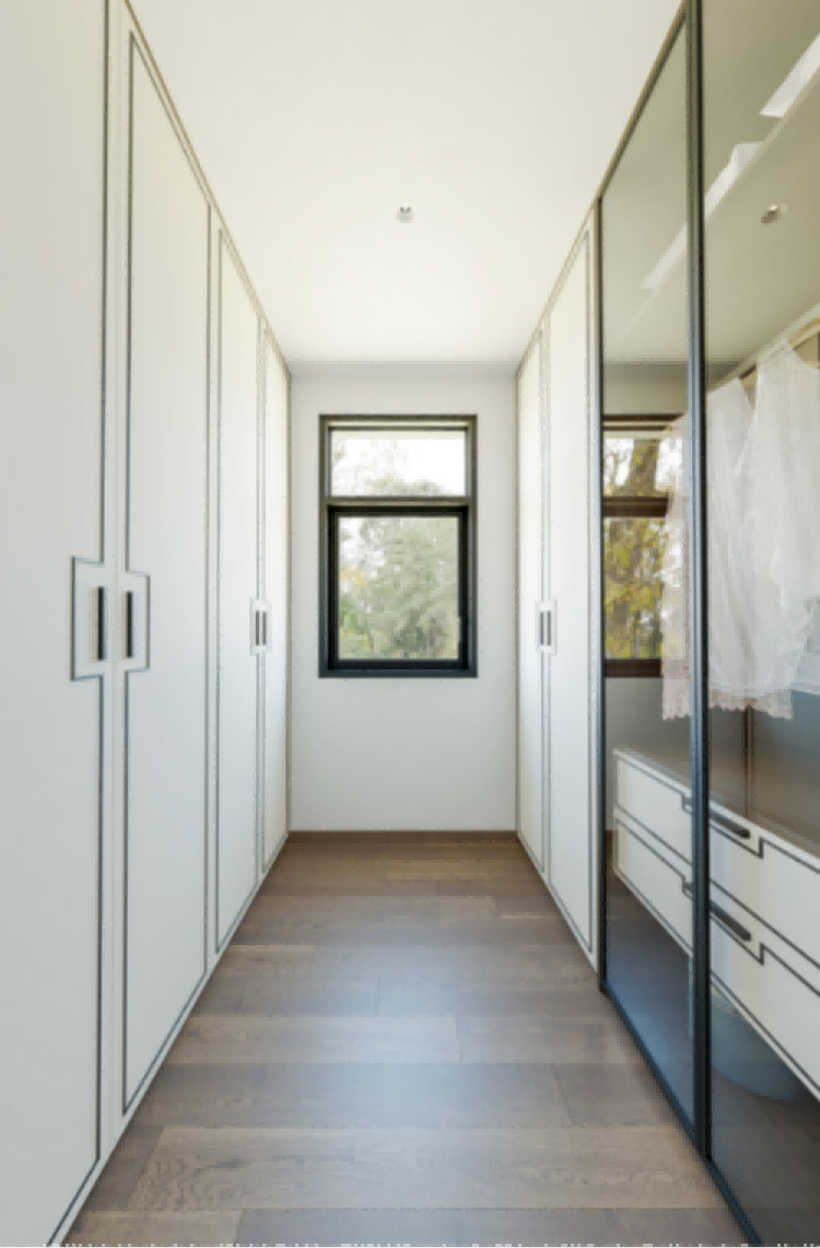 主卧套房配备了书房和独立衣帽间,男主人在书房专注工作,女主人在一旁研究明天的精 致穿搭。两人各自美好,却又相伴相依,这不就是夫妻间和谐的状态吗?