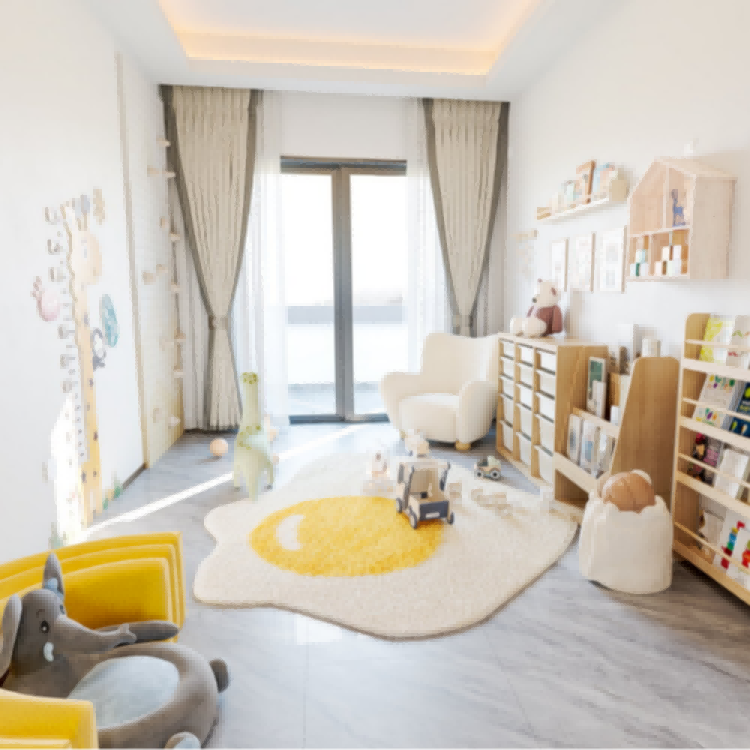 另外两间套房是为孩子们准备的,都配备了独立的卫生间和衣帽间。关上门,是他们自由成长的小世界;打开门,便融入全家共聚的欢声笑语。